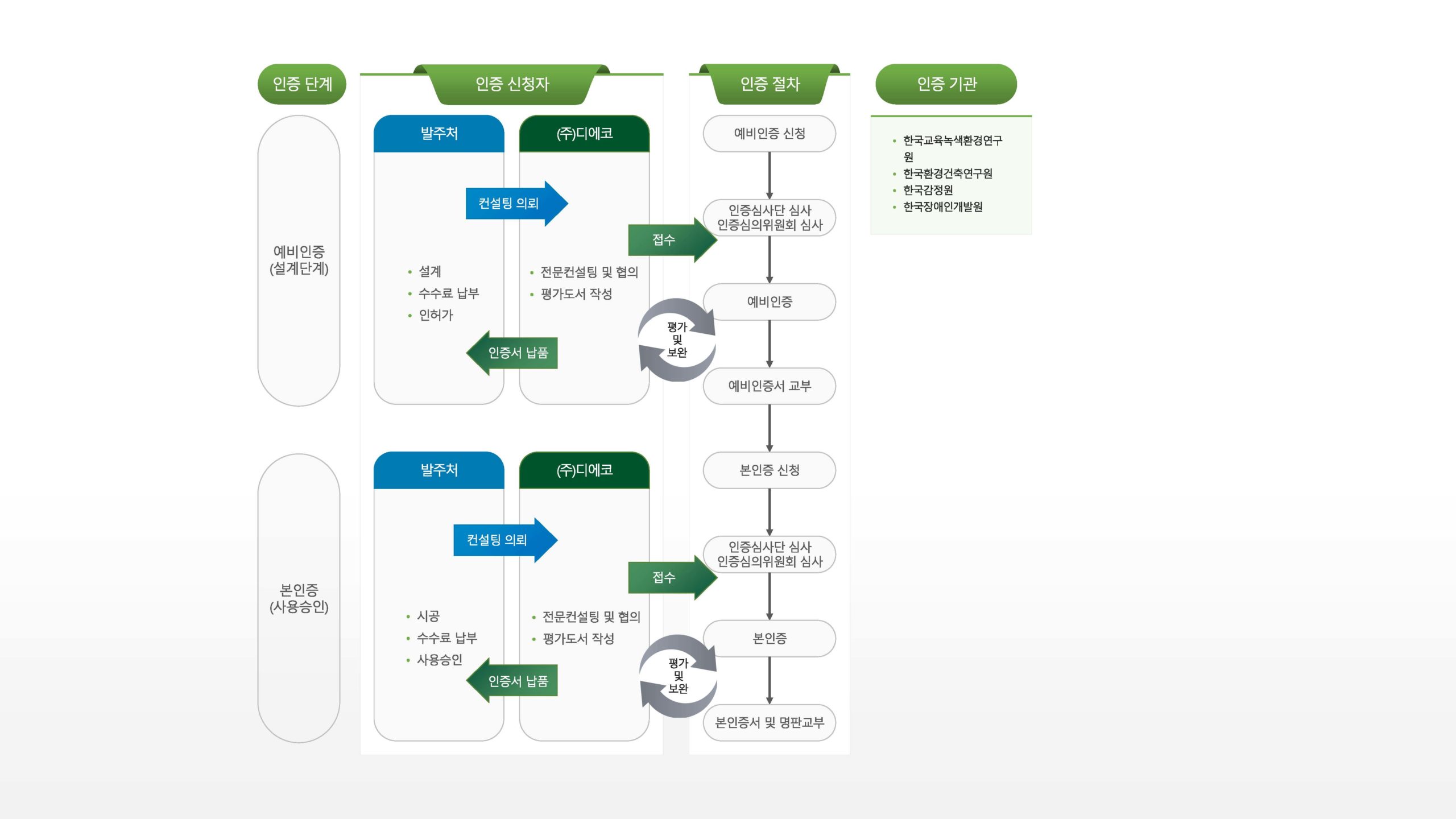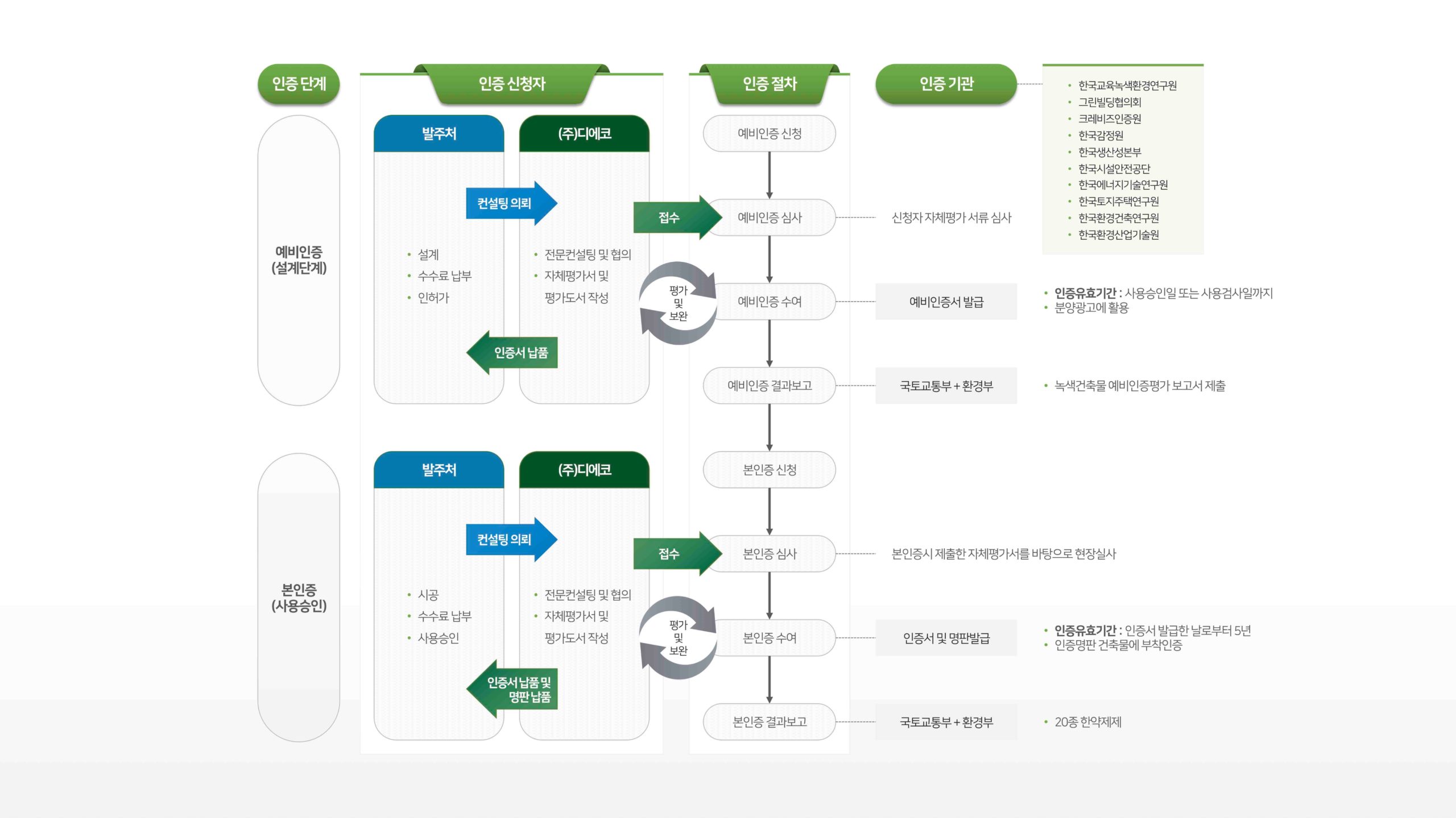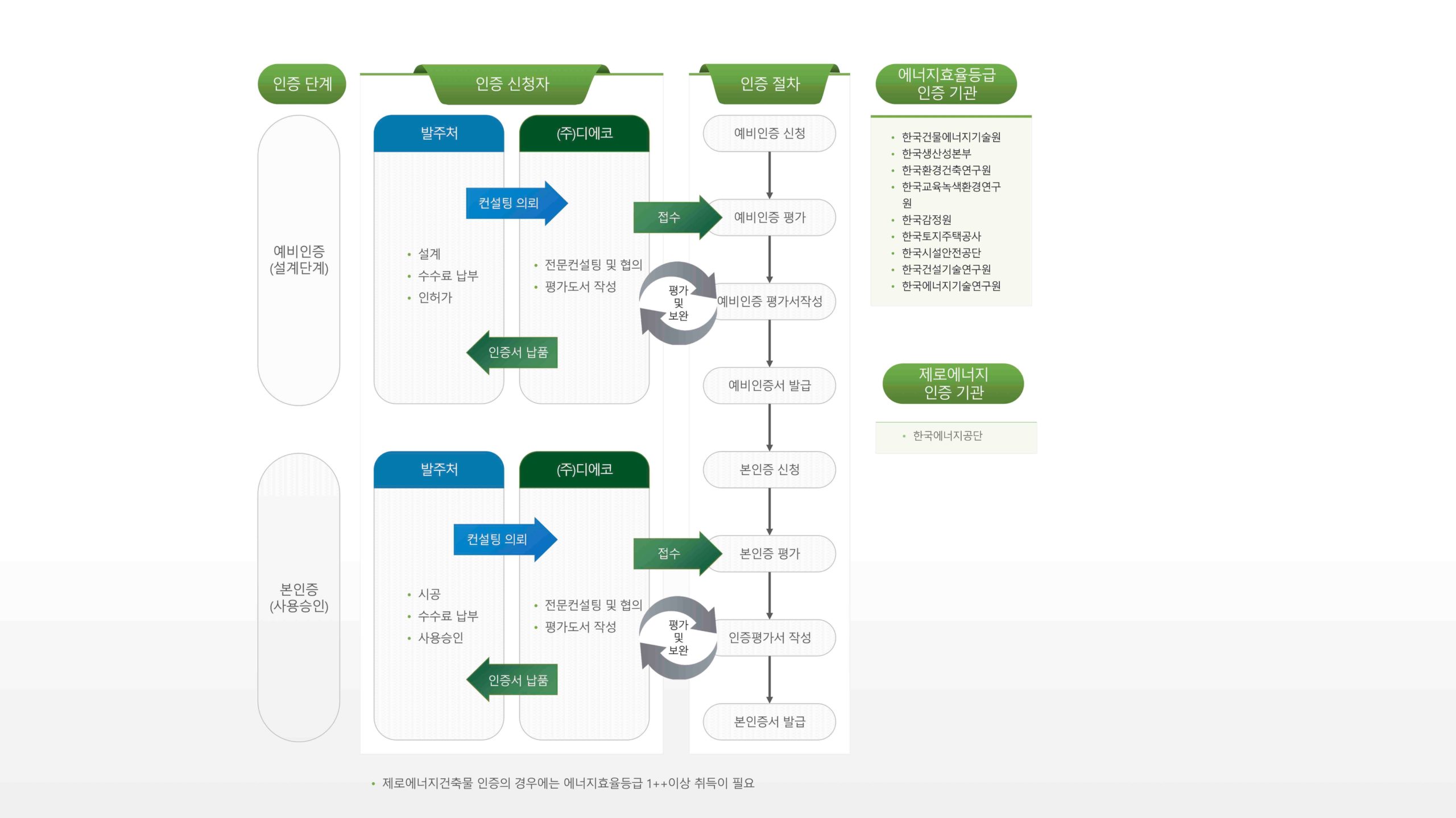 디에코는 녹색건축 인증 및 BF인증, 에너지효율등급, 제로에너지 등 건축물 관련 인증의 모든 것을 처리합니다.